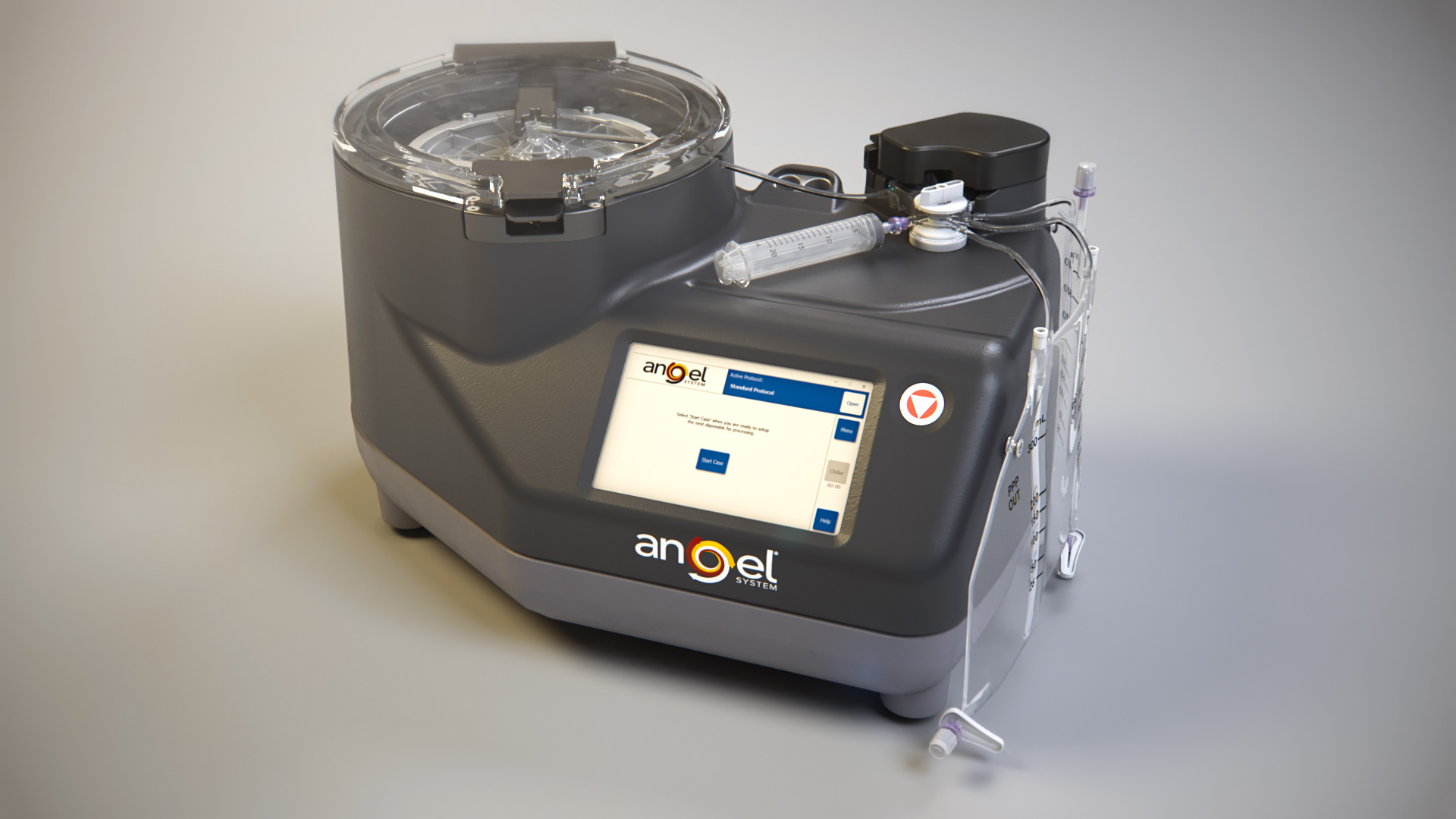 This animation shows the proper setup for the Angel System centrifuge through the use of a step-by-step checklist that is displayed on the device itself. The interactive touch screen on the centrifuge guides the user through a series of animated steps meant to be replicated by the user.